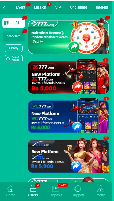 Different Type of Bonuses Plus Promotions The application offers welcome bonus for new users, first deposit bonus, daily login rewards, and exclusive promotional offers for participation. These cash prizes and bonuses can cause an increase in your profit and rewards significantly over time.
